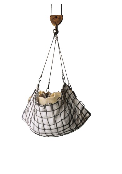 ●荷物を吊っているワイヤ径は、全体のサイズの大小に関わらず一定です。大型のモッコにはくれぐれも積みすぎることのない様にご注意ください