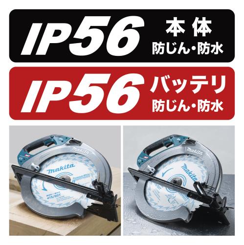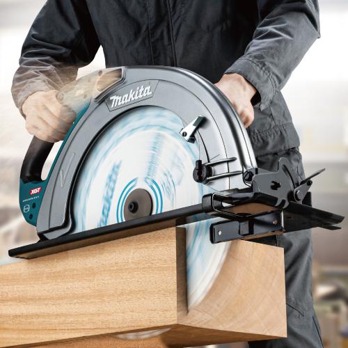世界最大(充電式マルノコにおいて。2024年9月現在、当社調べ。)ノコ刃外径415mm。当社AC機同等のハイパワーで厚物材を一発切断※写真のバッテリ・鮫肌プレミアムホワイトチップソーは別販売品です。