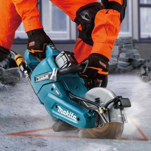 軽量・コンパクト。切断スピード、約45%アップ(同社製品18V×2機比。コンクリート重負荷切断/深さ50mm時)で高速&パワフル切断。※CE004Gの切断スピードは約40%アップ。※写真で使用しているバッテリ・刃物は別販売品です。