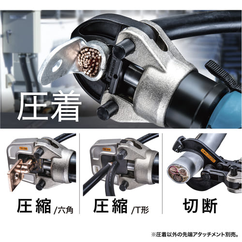 先端工具を付替えて圧着・圧縮・切断、多様な電設作業を1台で
