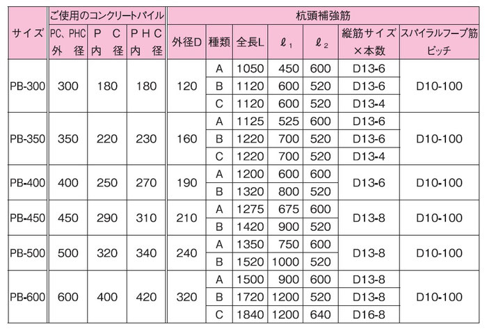 基礎工事 杭頭補強筋 PB-600 A