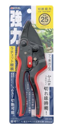 ハイパワー楽切り!フッ素刃ラチェット式剪定鋏200mm