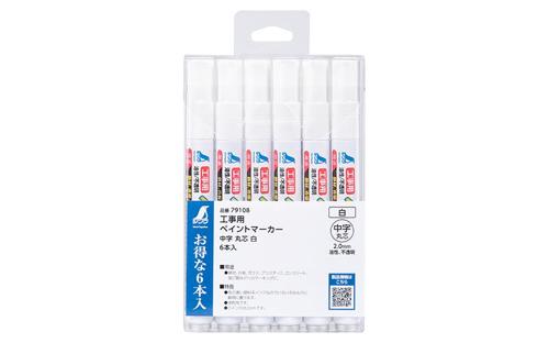 工事用 ペイントマーカー 中字 丸芯 白 6本入