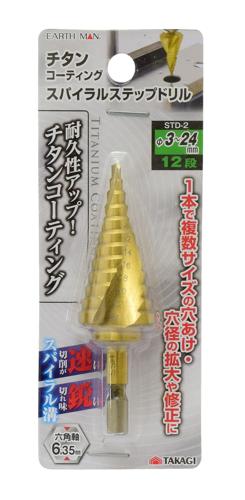 チタンコーティングスパイラルステップドリル