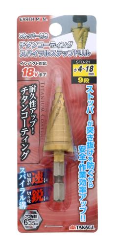 ストッパー付チタンコーティングスパイラルステップドリル